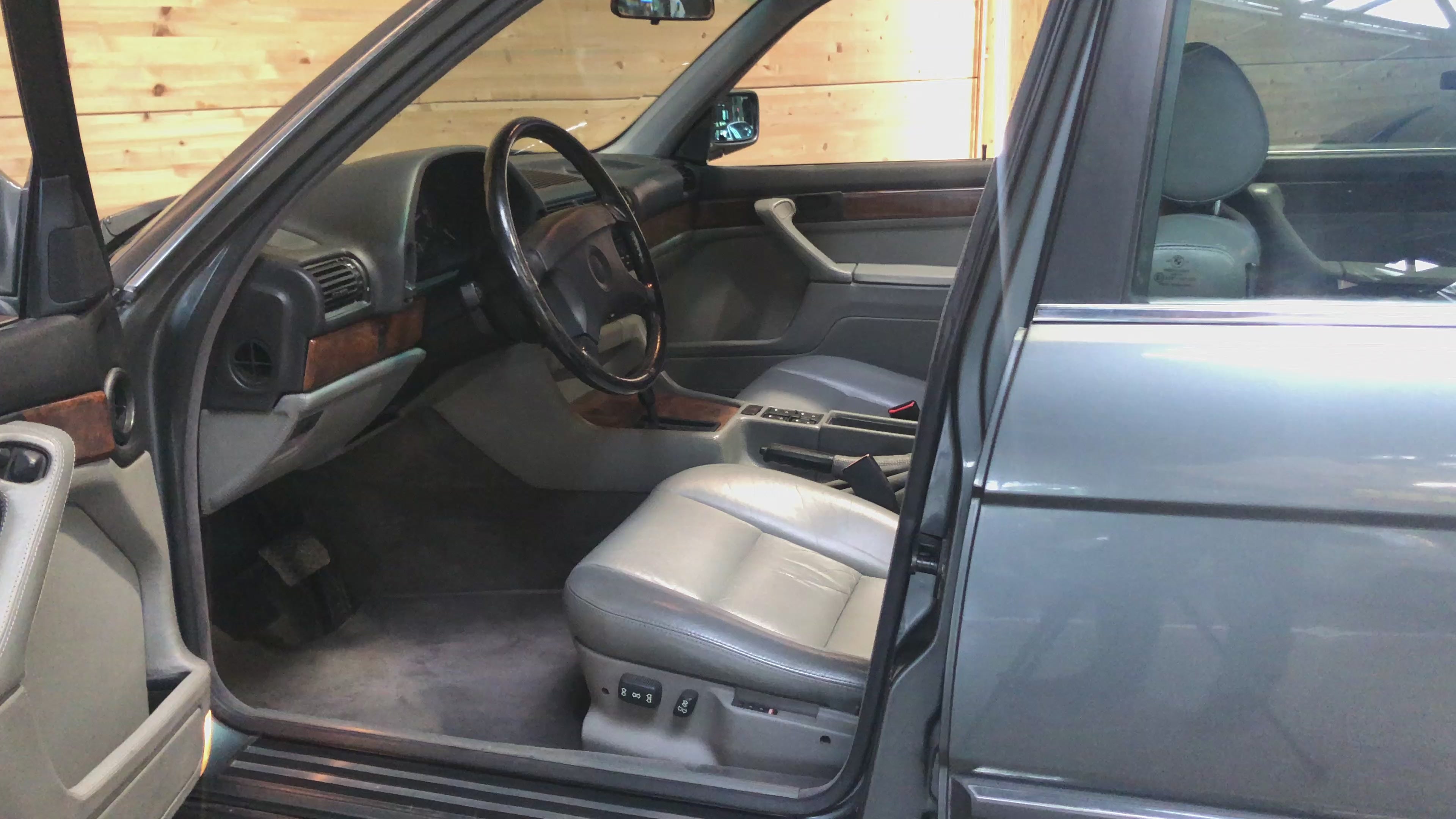Cette 750i version longue se pare de tous les équipements dignes de son rang d’alors : climatisation automatique séparée gauche/droite, régulateur de vitesse, toit ouvrant électrique, sièges avant électriques à mémoire, banquette arrière électrique, intérieur tout cuir…