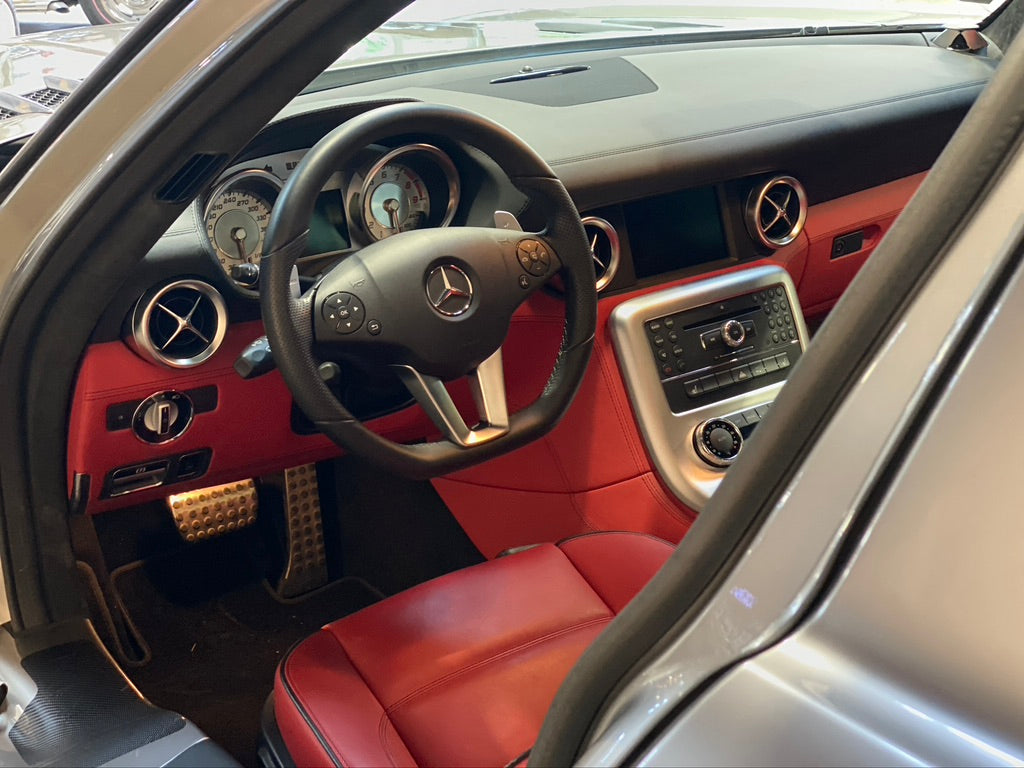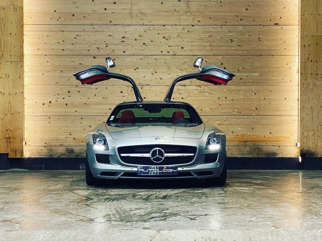 Véritable hommage à son ainée, la majestueuse 300 SL, le coupé SLS et son design très pur ne laisse pas indifférent. Il est mu par une mécanique de haut niveau, un V8 développant 571 ch à 6 800 tr/mn, ce qui lui permet d'appartenir au club très fermé des voitures pouvant dépasser les 300 km/h. Elle le fait d'ailleurs assez largement puisqu'elle atteint 317 km/h en pointe, avec une accélération de 0 à 100 km/h en 3,8 s. Sa boîte de vitesse automatique à sept rapports et double embrayage permet des passages ultra-rapides et le conducteur a le choix entre plusieurs modes de conduite.